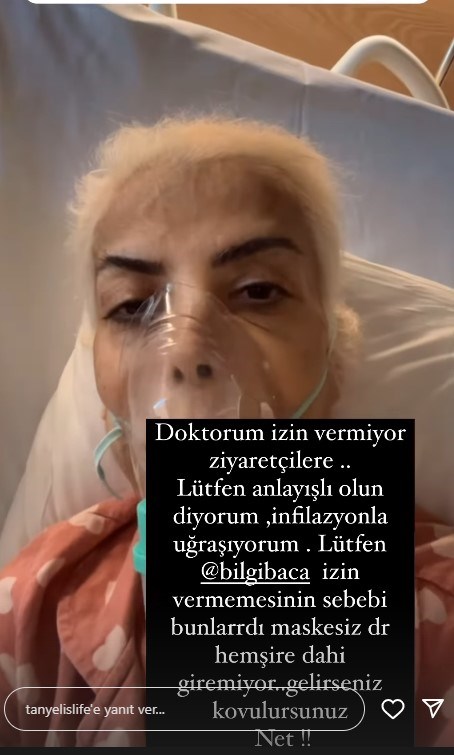 TANYELİ'YE ZİYARETÇİ YASAĞI Geçtiğimiz hafta, arkadaşlarının kendisi için düzenlediği sürpriz doğum günü partisine katılan Tanyeli'ye ziyaretçi yasağı geldi. Tanyeli "Günaydın, sabaha ezanının şifası, bereketi üstümüzde olsun. Ziyaretçi yasağım devam ediyor. Lütfen gelmeyin. Ailem dışında kimseyi almıyorlar. Ben de size mahcup oluyorum. Yasak kalkınca buradan bildireceğim. Sevgiler, hayırlı günler..." ifadelerini kullandı. Tanyeli, ziyaretçi yasağı sonrası sosyal medyadan açıklamada bulundu. Oksijen maskesine bağlanan Tanyeli, "Doktorum izin vermiyor ziyaretçilere. Lütfen anlayışlı olun diyorum. İnfluenza ile uğraşıyorum. Maskesiz doktor - hemşire dahi giremiyor. Gelirseniz, kovulursunuz net!" dedi.